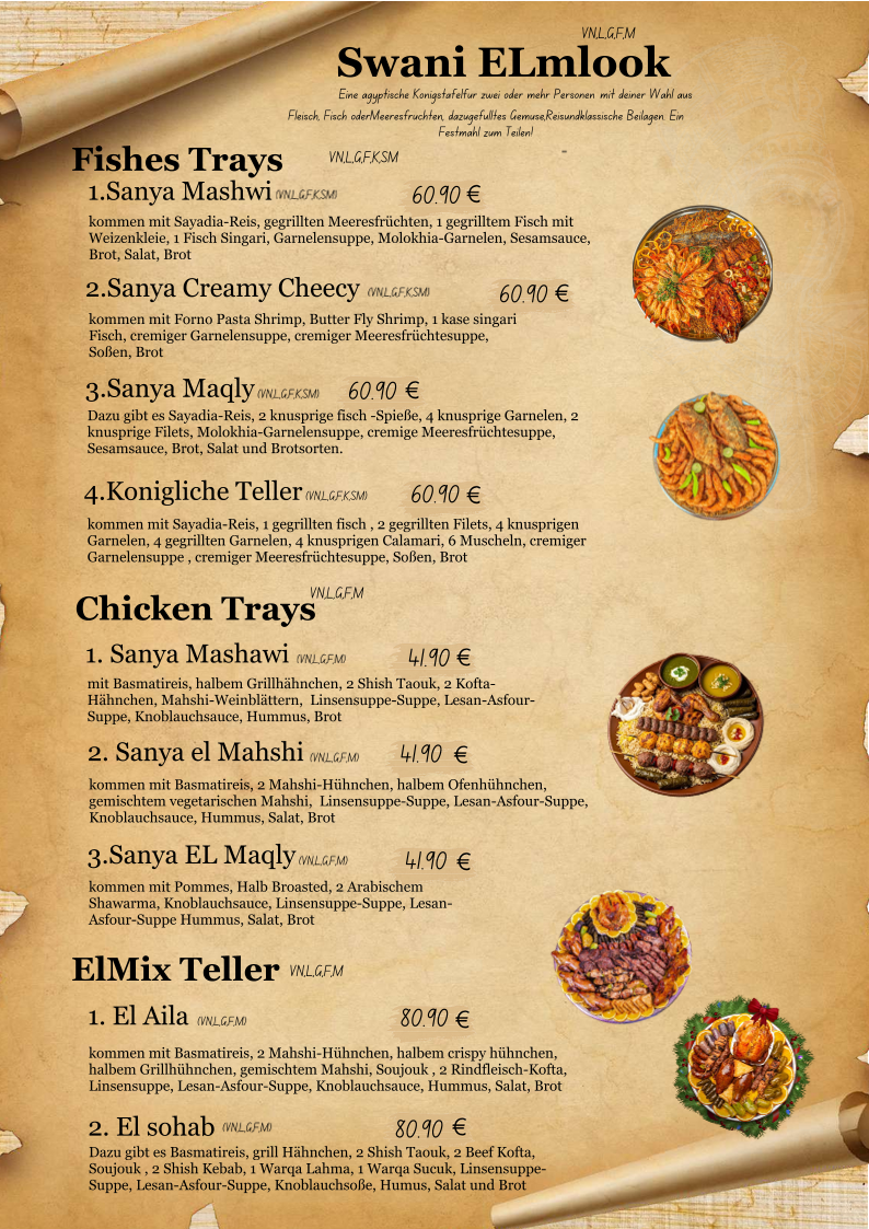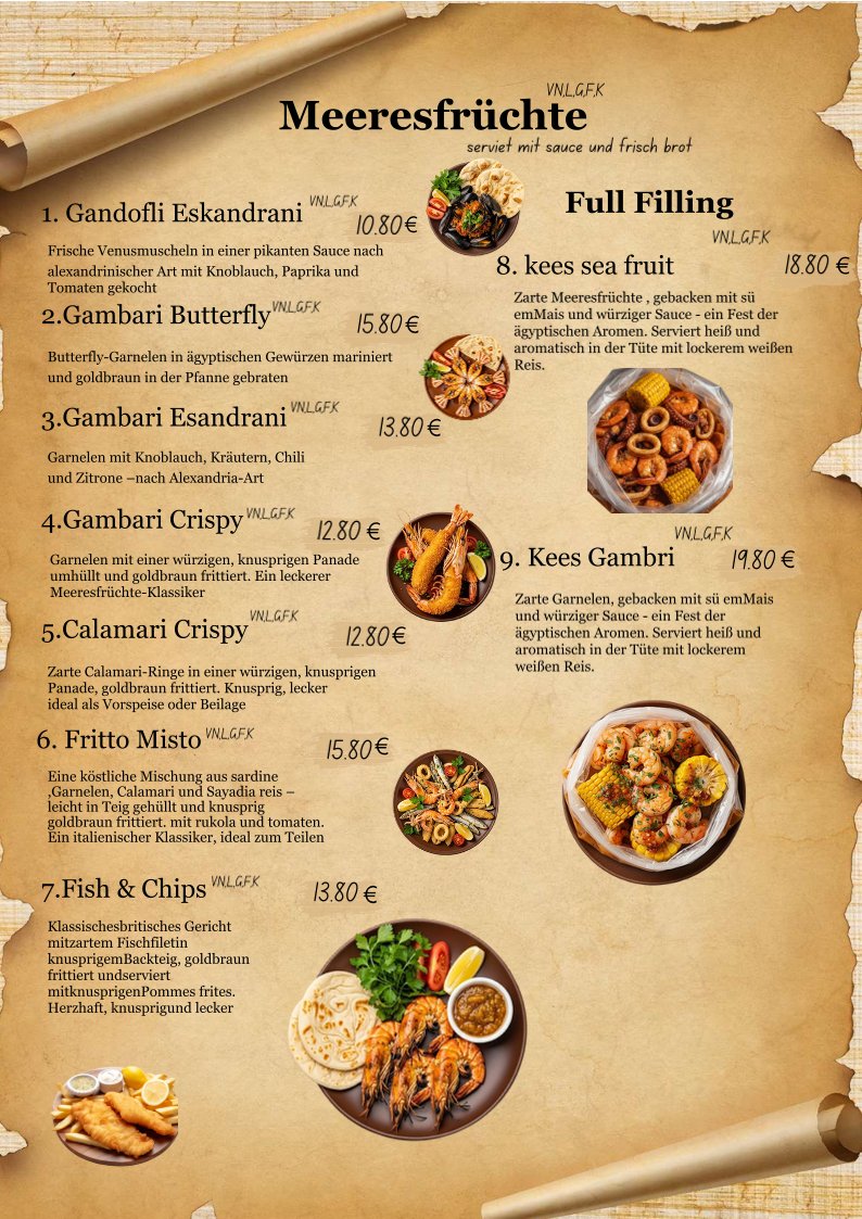 Introducing the menu at Eskandria, a gem nestled in Berlin's heart, transports diners to the Mediterranean coast of Egypt. As you step inside, vibrant aromas and warm hospitality greet you, thanks to the friendly staff and owner, who hails from Alexandria—a city famed for its seafood delights. The menu is a treasure trove, showcasing expertly grilled fish such as Wolfsbarsch and Makrele, each prepared with a unique Egyptian twist. Flavorful soups like MolokhiaGambari and a rich Sea Fruit Suppe captivate the palate. Moreover, the chilled beverages, including the creamy PistazienFrappe, offer the perfect refreshment. Guests rave about the myriad of seafood, chicken, and vegetarian options, along with traditional desserts that evoke nostalgia for home-cooked meals. At Eskandria, it’s not just about eating; it’s about savoring each bite and creating memorable experiences.